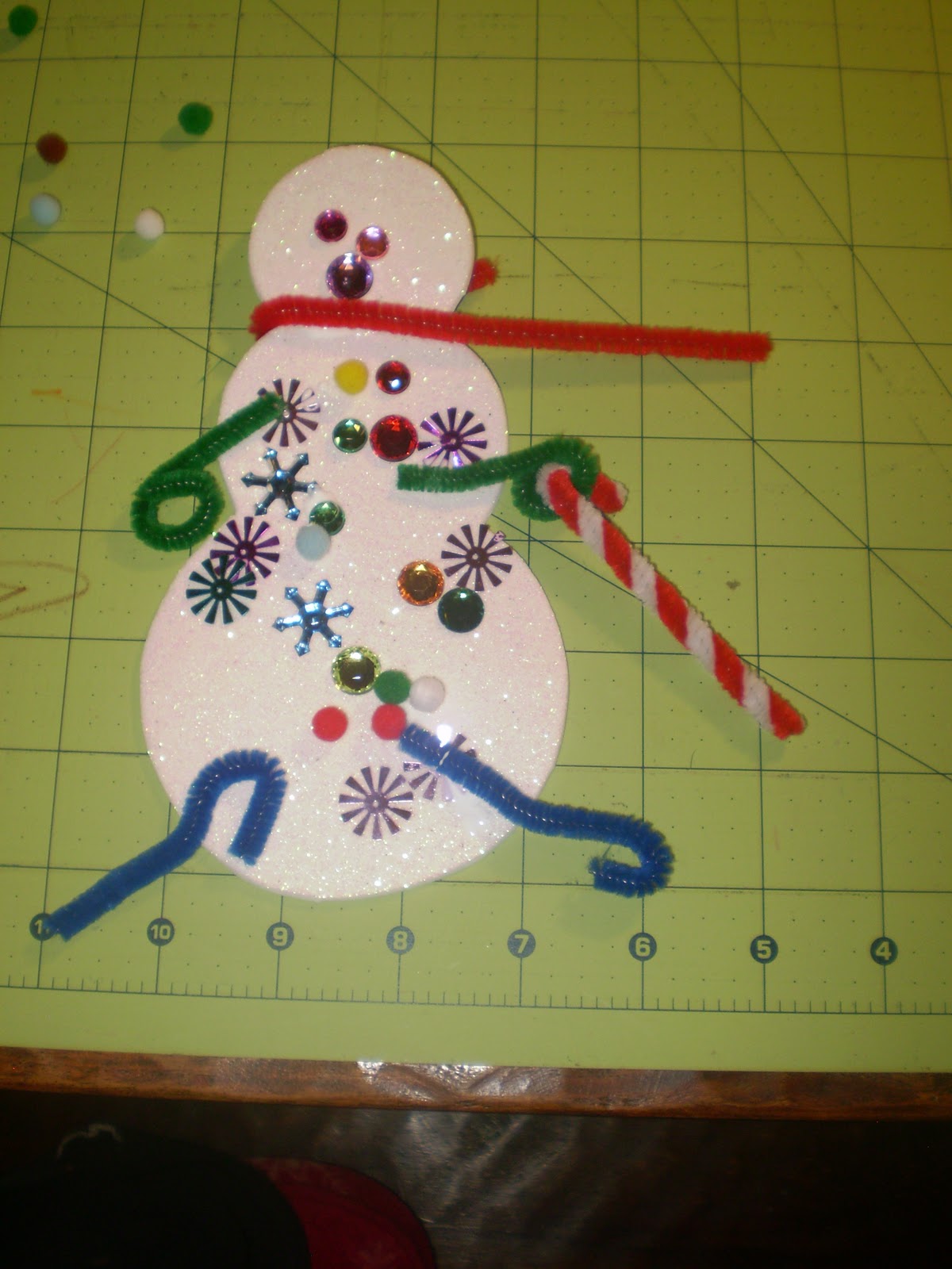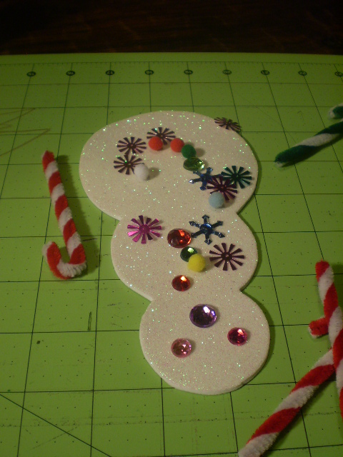Have your child decorate her tree or snowman with the decorations you have set out. I put a variety of decorations in my hand and let Remy choose which ones she wanted to use. It was easier for her to pick them up from my hand than it was to try and pick them up from the table.